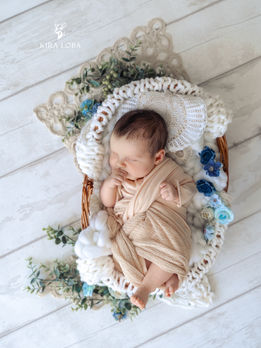 Ich komme mit allem, was wir brauchen, zu euch nach Hause: liebevoll zusammengestellte Accessoires, Körbe, Stoffe, Kleidung. Euer Baby bleibt in vertrauter Umgebung – und ihr könnt den Moment einfach genießen.